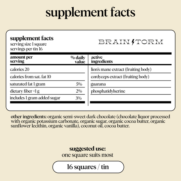 - Take 1 square in the morning or early afternoon for a clean boost of focus and energy.