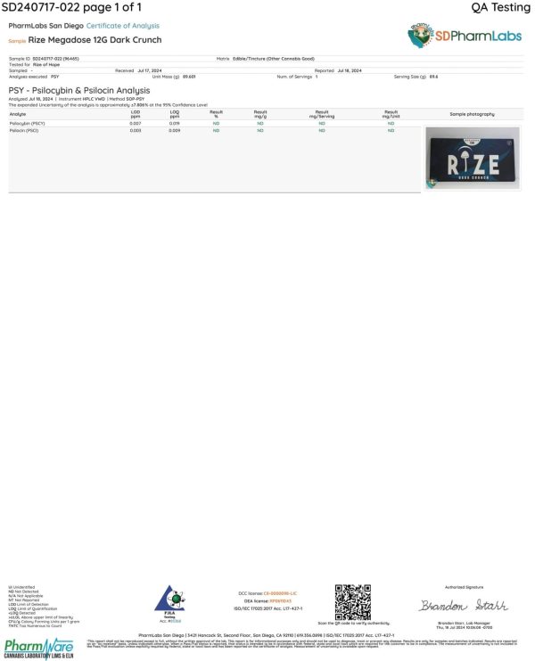 Does the Rize Dark Crunch Bar contain psilocybin?