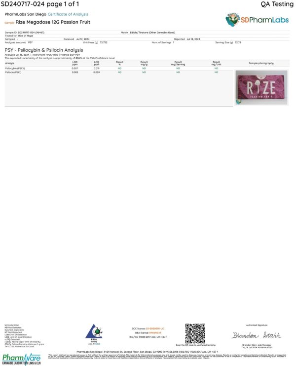 Does the Rize Passion Fruit Bar contain psilocybin?